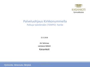 Palveluohjaus Kirkkonummella Ari Vehmas, yleislääketieteen erikoislääkäri, kuntoutuksen erityispätevyys, Kaisankoti 29.03.18